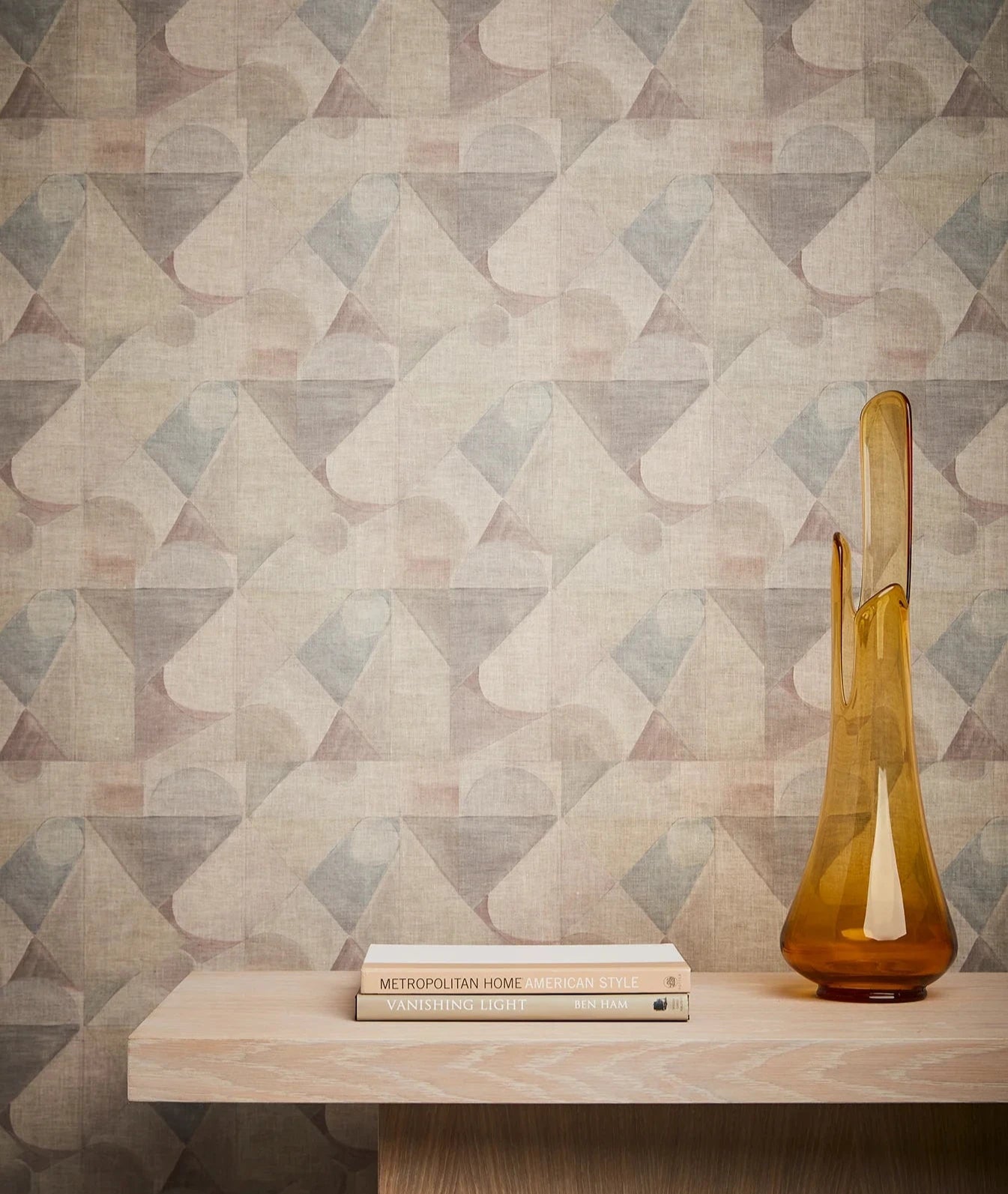 ABSTRACT ISLE is inspired by the elegance of stained glass and is originally painted in watercolor. Featuring soft, tonal hues and geometric overlapping shapes. Printed on our Paperback Linen, this series is the perfect way to add dynamic texture to any room.